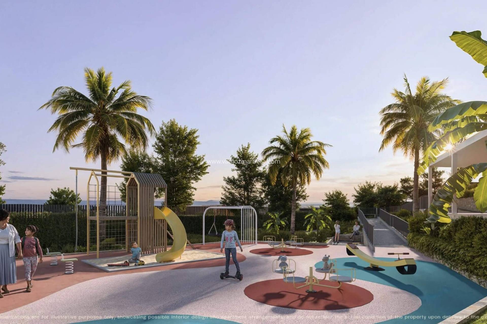 Rayos del Sol bevindt zich in El Chaparral, een van de meest gegeerde locaties aan de Costa del Sol. Dit project combineert het beste van twee werelden: de serene rust van een groene omgeving en de nabijheid van de bruisende kustlijn. Met het strand op slechts 700 meter afstand geniet u binnen enkele minuten van de gouden zandstranden en het azuurblauwe water.