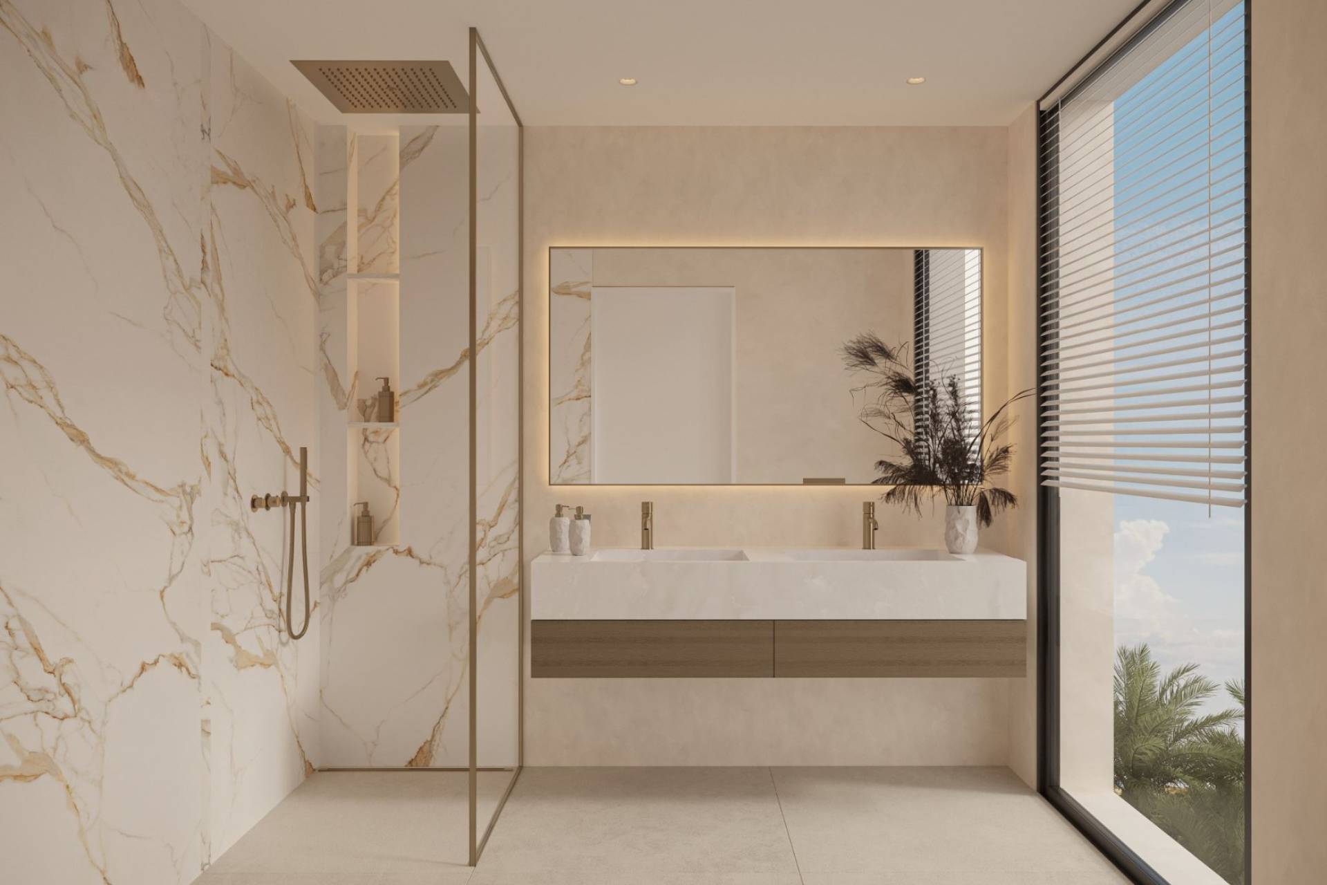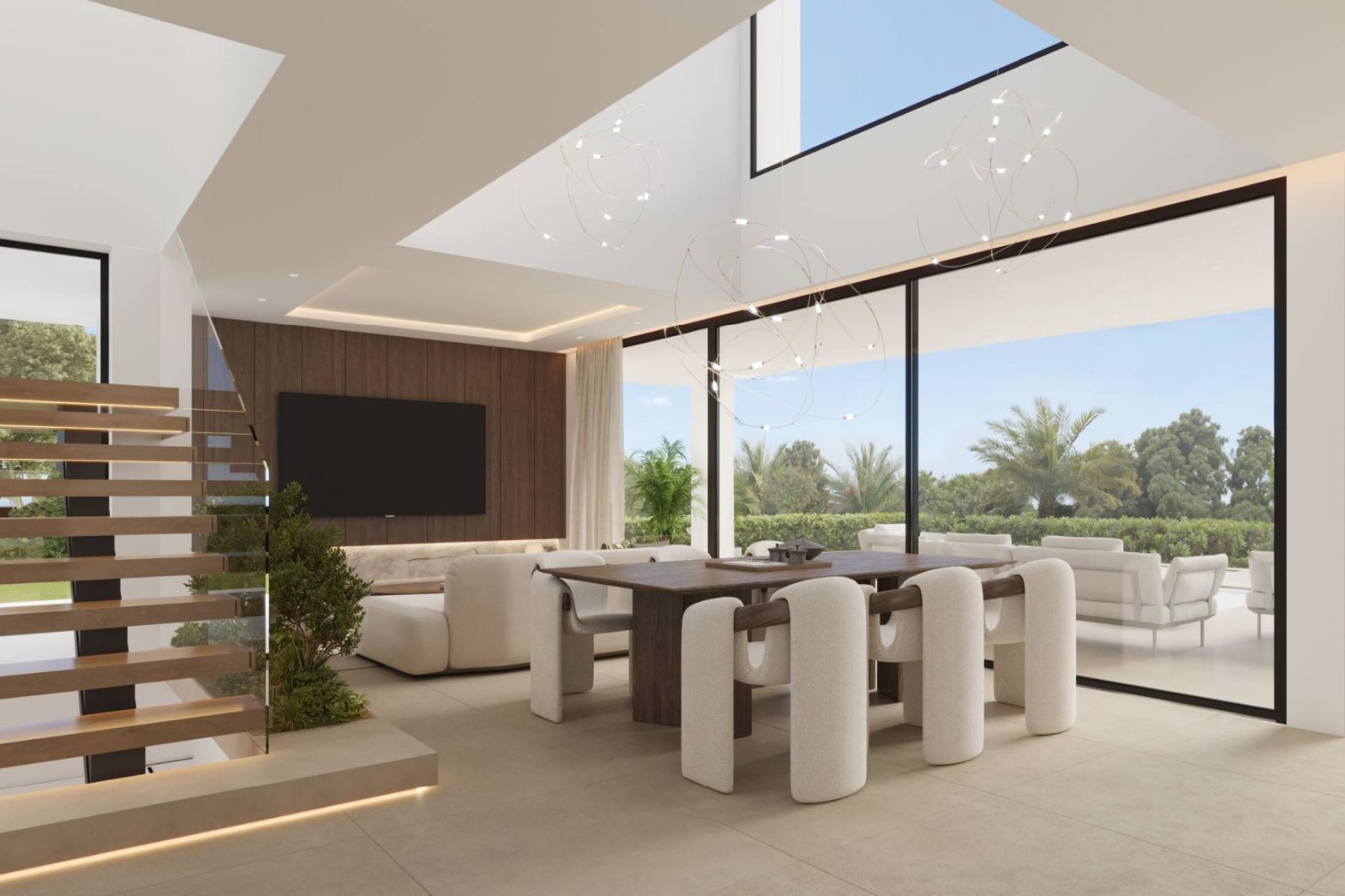Binnenin ademen de villa’s licht en elegantie. Grote vloer-tot-plafond ramen laten het zonlicht overvloedig binnen en creëren een open, luchtige sfeer.