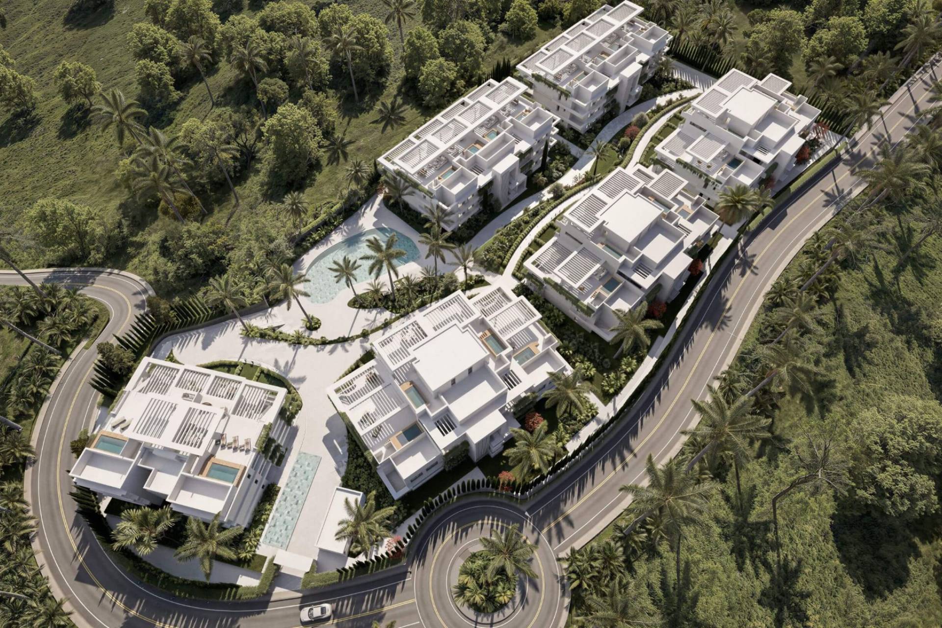 Almina Residences staat voor modern wonen aan de Costa del Sol. Het project biedt een harmonie tussen hedendaagse architectuur en de natuurlijke omgeving. De residentie bestaat uit zorgvuldig ontworpen gebouwen die omgeven worden door groene zones en wandelpaden, waardoor een rustige en elegante leefomgeving ontstaat.