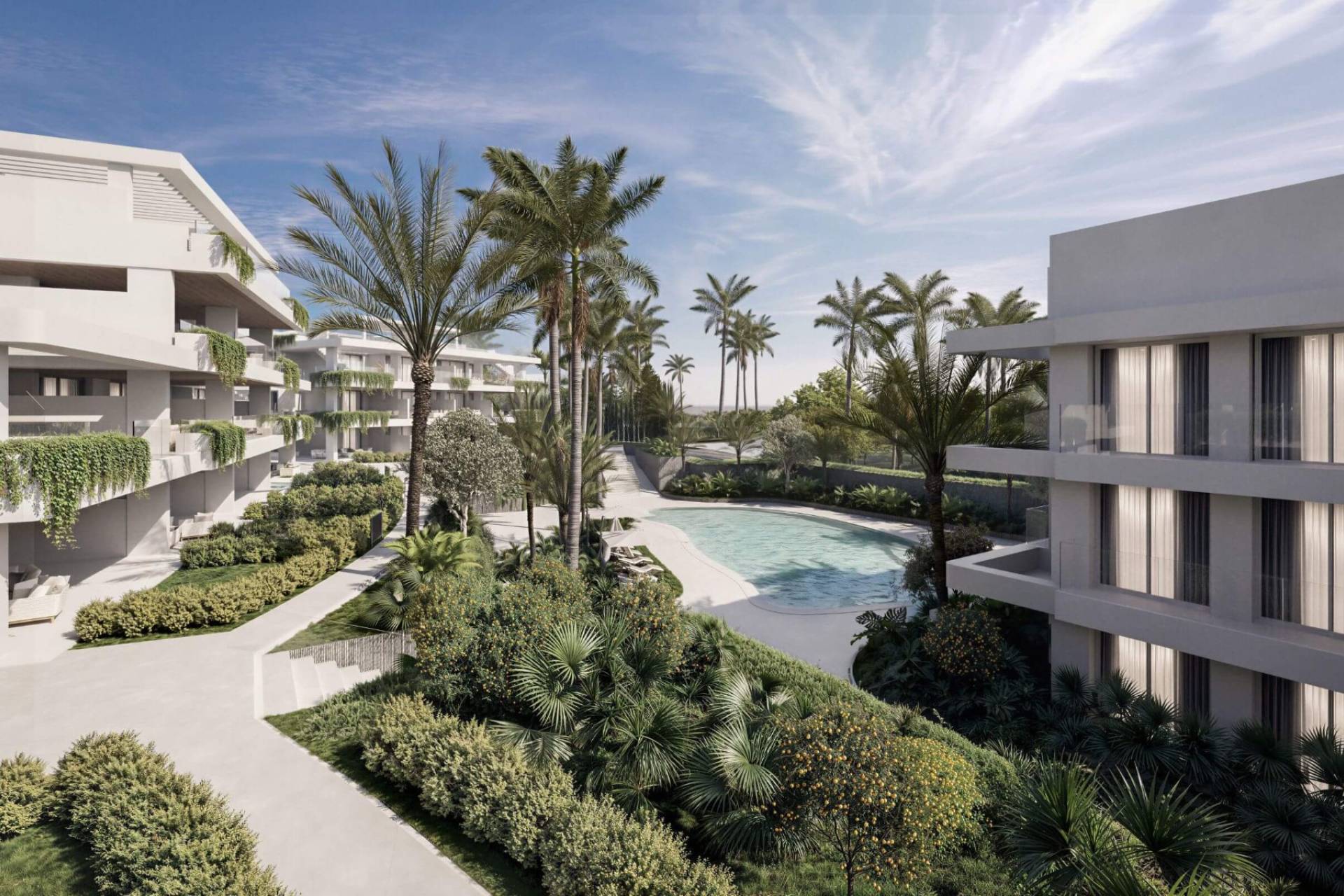 Almina Residences staat voor modern wonen aan de Costa del Sol. Het project biedt een harmonie tussen hedendaagse architectuur en de natuurlijke omgeving. De residentie bestaat uit zorgvuldig ontworpen gebouwen die omgeven worden door groene zones en wandelpaden, waardoor een rustige en elegante leefomgeving ontstaat.