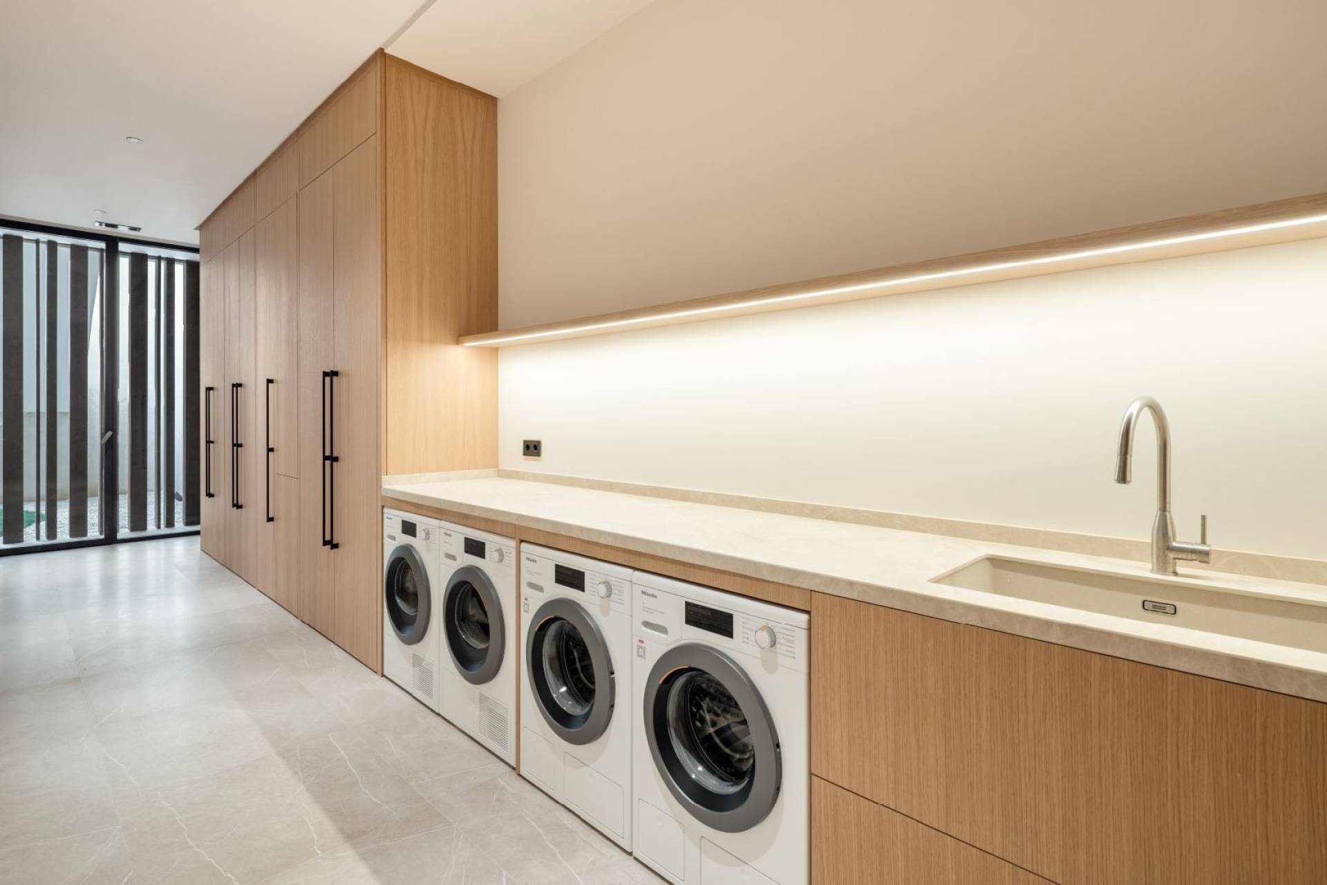 De afwerking van Villa Mio getuigt van uitzonderlijk vakmanschap en oog voor detail. Denk aan visgraat parketvloeren, lederen deurklinken en design schakelaars geïnspireerd op Aston Martin.